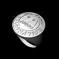 (先給客參考製做作品->客手繪圖->2D製做平面圖->選擇字型->客修改加字->2D圖修改確認->3D模擬圖製做->3D圖修改確認->刻蠟->鑄造成銀->手工修拋染黑->成品)