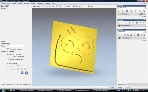 小嫚去了工廠~剛好師傅在製圖~順便學一下ARTCAM~就把師傅未完成的部分畫完~(月亮的裡面不知甚麼的圖...)回到家後~再把今天學的~現學現賣~畫了一個Q版的圖~讓大家看一下2D的圖及3D的圖~~最近即將準備好中文的教學手冊~對珠寶設計有興趣的~歡迎來預約報名學習ARTCAM的課程喔~~